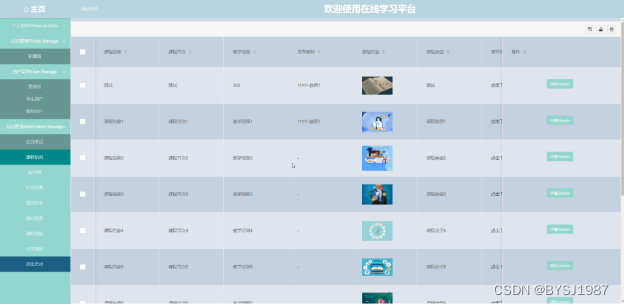 (1)用户管理:管理员可以对前台上注册过的学生用户以及课程用户信息进行管控,也可以对管理员信息进行管控。