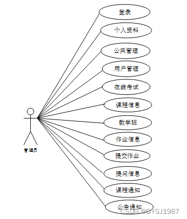 web后台管理上的管理员是维护整个在线学习平台中所有数据信息的。管理员角色用例如图2-4所示。