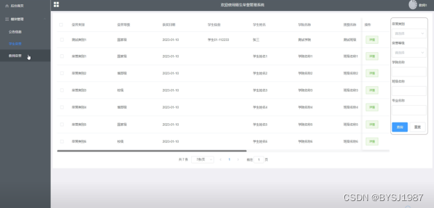 (3)学生荣誉:学生/教师点击“学生荣誉”这个菜单按钮,可以查看学校学生的各项荣誉信息然后进行搜索查询某个学生操作。