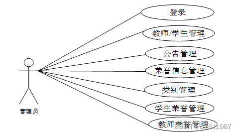 通过2.3功能的分析,得出了本师生荣誉管理系统的用例图: