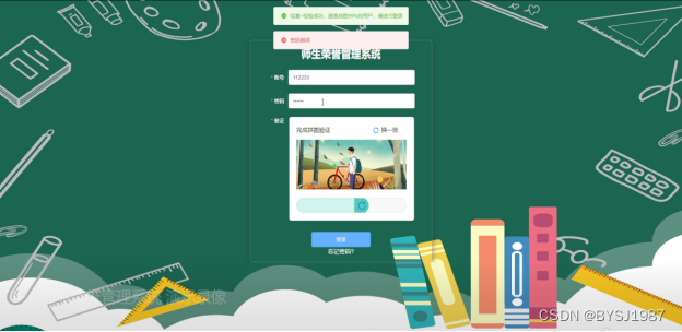 | 预期结果 | 教师/学生名和密码正确的时候,跳转到登录成功界面,反之则显示错误信息,提示重新输入 |