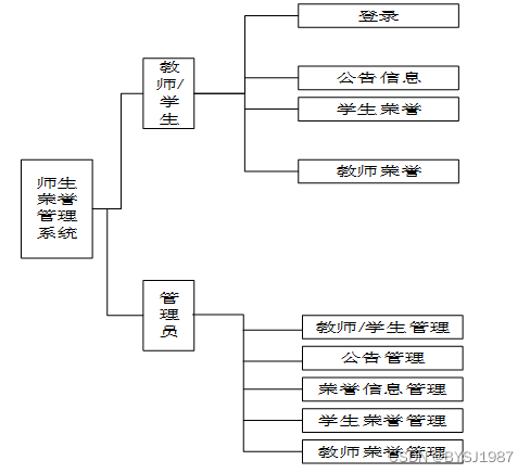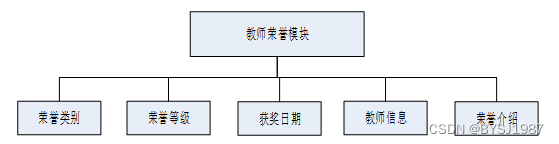 师生荣誉管理系统中,用户可以在线查询教师荣誉信息等,其模块功能结构,具体的结构图如下: