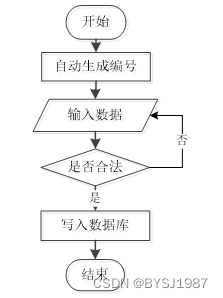 用户成功登入系统后就能够实现增加数据的操作,增加数据的编号是特定的,系统生成,用户不能随意填写,除了编号以外,其他增加信息用户自己填写,填写后的信息经过系统验证,验证合法通过就显示增加数据成功了,相反的话,就没有增加成功,图2-1显示的就是在增加数据时的流程。