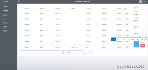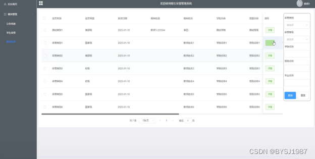 (5)学生荣誉管理:管理员对学生荣誉信息进行维护管理。