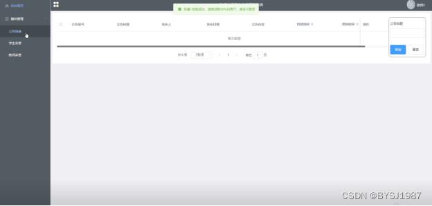 (2)公告表:学生/教师登录后可以点击公告表对公告信息进行查看等。