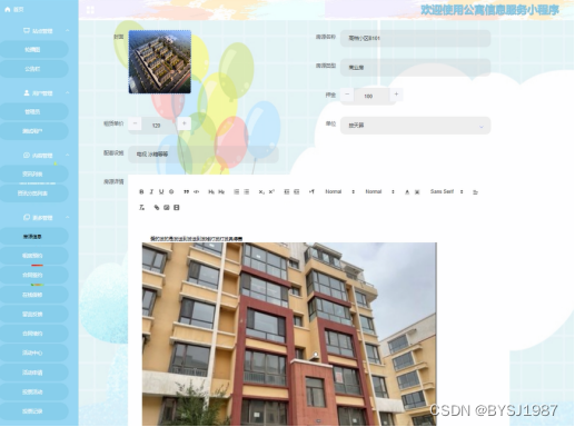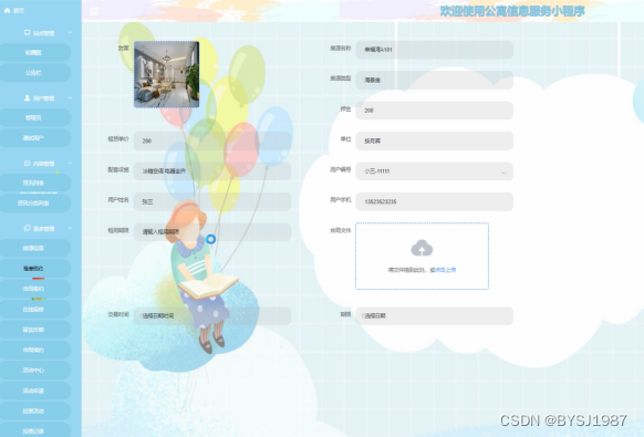 基于springboot框架的公寓信息服务小程序可在移动端实现租房预约、合同签约、在线保修、留言反馈、合同续约等操作,相对于传统同类小程序,基于springboot框架的公寓信息服务小程序提高了效率和便利性。在后台可对租房预约、合同签约、在线保修、留言反馈、合同续约、活动中心、活动申请、投票活动等实现高效的公寓租赁管理,充分了解用户的需求,更有针对性的服务用户。