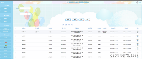 公寓信息服务小程序的主要使用者分为管理员、用户,实现功能包括管理员:站点管理(轮播图、公告栏)用户管理(管理员、用户)、内容管理(资讯列表、资讯分类列表)、更多管理(房源信息、租房预约、合同签约、在线保修、留言反馈、合同续约、活动中心、活动申请、投票活动、投票记录等功能。用户首页:房源信息(预约、点赞、评论、收藏)、在线保修、留言反馈、活动中心(申请、点赞、评论、收藏)、投票活动(投票、点赞、评论、收藏)、公告;公寓资讯;我的:基本信息、收藏、租房预约、合同签约、在线保修、留言反馈、合同续约、活动申请、投票记录。由于本网站的功能模块设计比较全面,所以使得整个公寓信息服务小程序信息管理的过程得以实现。