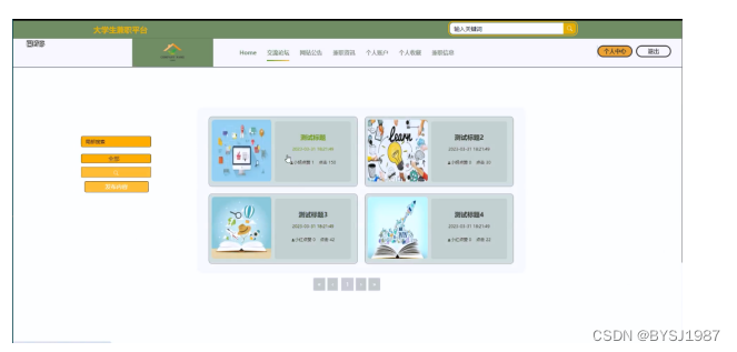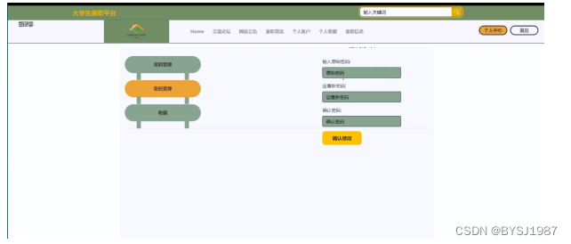 This design mainly implements a part-time platform for college students that integrates the advantages of humanization, efficiency, and convenience, and completes functional modules such as part-time classification, part-time information, and resume delivery. The system communicates with the server through a browser to achieve data interaction and change. You can operate the system by moving your fingers through a computer to achieve data communication management. The entire system design process fully considers the issues of data security, stability, and reliability, and the operation process is simple. This system improves work efficiency and reduces errors and omissions in data storage through scientific management methods and convenient services.