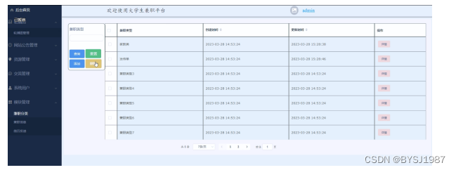 | 用例描述 | 管理员正确登录后台管理的条件下,对兼职信息模块进行管理 |