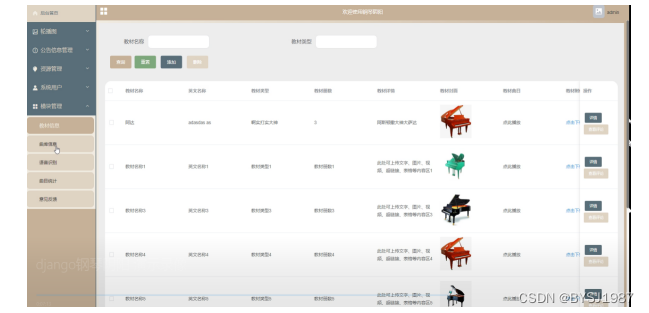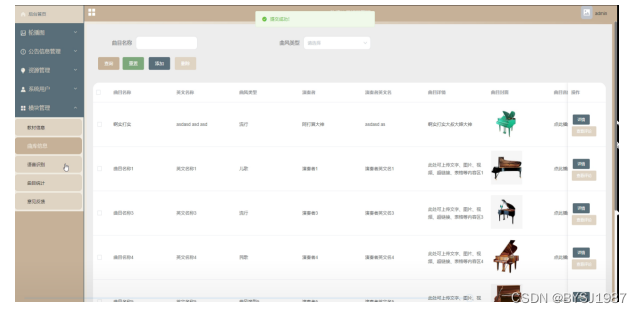 钢琴资讯管理:对钢琴资讯信息进行维护,添加、删除、修改信息。