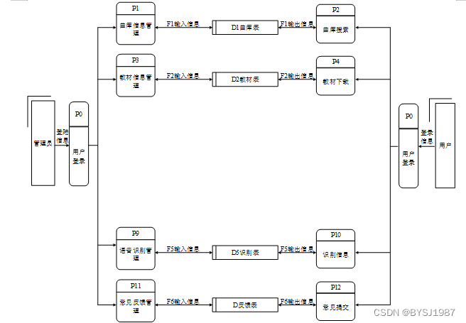 对系统的数据流进行分析,系统的使用者分为二类,一般用户,管理员。系统主要对界面信息传送,登录信息的验证,注册信息的接收,用户各种操作的响应做处理。