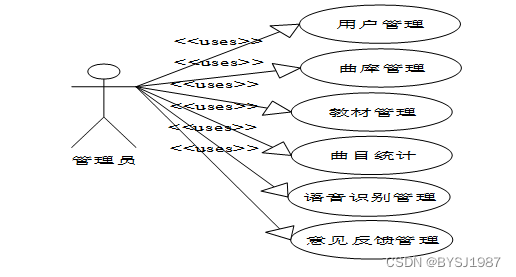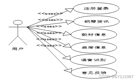 钢琴阴阳系统的功能主要分为前台用户根据自己的需求进行注册登录,对钢琴资讯进行浏览,曲库信息推荐、教材下载、语音识别播放等。后台系统管理员主要对注册用户,资讯数据,教材信息、曲库信息、曲目统计、语音识别、意见反馈等详细信息进行管理。
