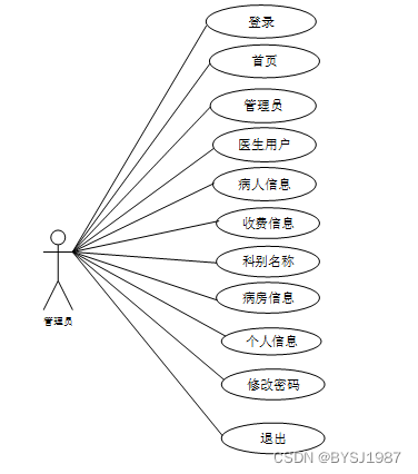 web后台管理上的管理员是维护整个医院住院管理系统中所有数据信息的。管理员角色用例如图2-4所示。