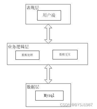 数据层(DL):由于本医院住院管理系统的数据是放在服务端的mysql数据库中,因此本属于服务层的部分可以直接整合在业务逻辑层中,所以数据层中只有数据库,其主要完成本医院住院管理系统的数据存储和管理功能。