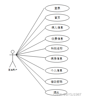 图2-3 医院住院管理系统医生用户角色用例图