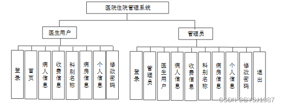 图3-2 医院住院管理系统功能模块图