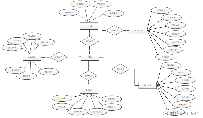 下面是整个医院住院管理系统中主要的数据库表总E-R实体关系图。