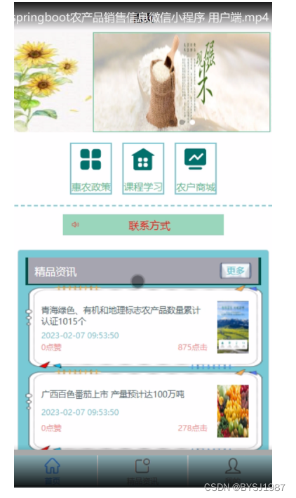 在信息飞速发展的今天,网络已成为人们重要的信息交流平台。每天都有大量的农产品需要通过网络发布,为此,本人开发了一个基于springboot农产品销售信息微信小程序。