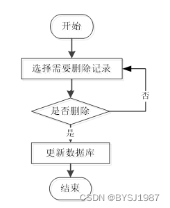 用户选择要删除的信息并单击Delete按钮。系统提示是否删除信息。如果用户想要删除信息,系统将删除信息。系统数据库删除信息。删除信息流程图如图3-5所示。