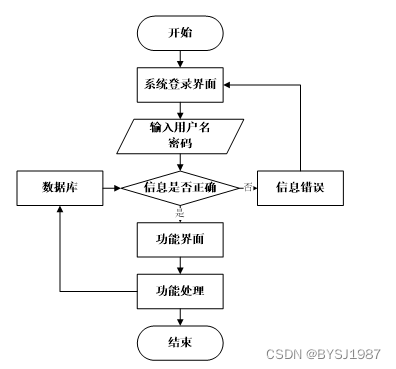 用户打开客户端并进入系统后,会先显示登录界面,输入正确的用户名和密码,系统自动检测信息,若信息无误,则用户会进入系统功能界面,进行操作,否则会提示错误无法登录,操作流程如图3-3所示。