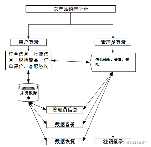 系统架构图属于系统设计阶段,系统架构图只是这个阶段一个产物,系统的总体架构决定了整个系统的模式,是系统的基础。基于农产品销售信息系统的整体结构设计如图4-2所示。