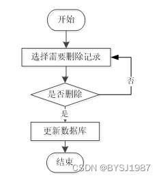 管理员可以对信息等进行信息的删除,对要删除的信息进行选中后,点击删除按钮,系统会询问是否确定,若点击确定,则系统会删除掉选中的信息,并在数据库内对信息进行删除,删除信息流程图如图3-6所示。