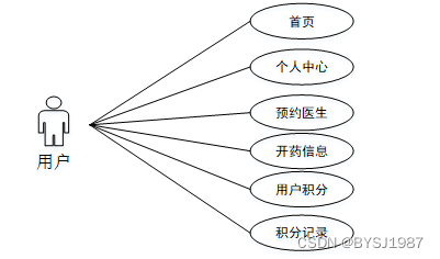 用户进入系统可以进行首页、模块管理(预约医生、开药信息、用户积分、积分记录)、个人中心管理等。用户用例如图3-9所示。