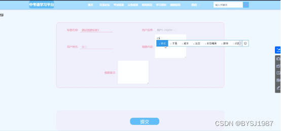 (7)错题信息:点击“错题信息”后跳转到错题信息提交界面,选择错题内容,输入标题名称、用户姓名、用户信息、错题备注,然后点击提交错题信息就完成了。