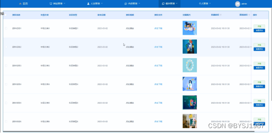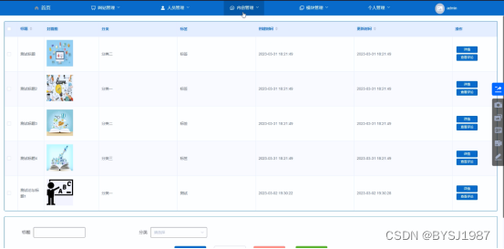 (6)内容管理:当点击“内容管理”这一菜单的时候,会出现交流论坛+论坛分类+新闻资讯+新闻分类+考试信息这五个子菜单,可以对这五个模块进行增删改查操作;
