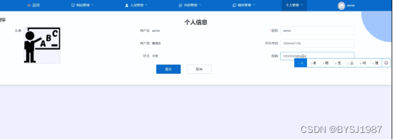 (5)个人管理:管理员点击“个人管理”菜单可以对个人信息以及登录的密码进行设置。