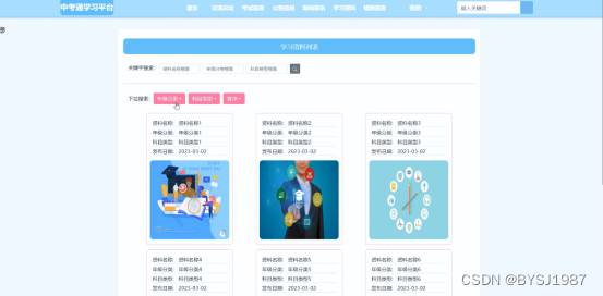 | 预期结果 | 页面显示包含有搜索关键字的学习资料 |