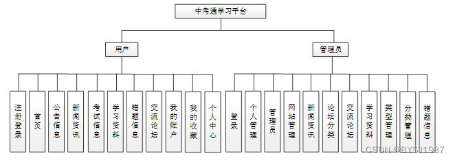 根据第二章中中考通学习平台的功能分析可知,中考通学习平台中整体功能模块图如图3.1所示,