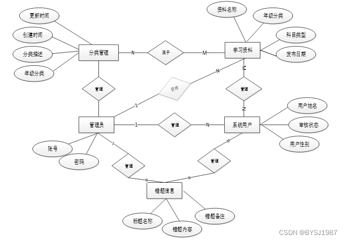 下面是整个中考通学习平台中主要的数据库表总E-R实体关系图。