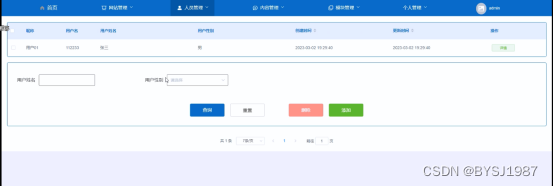 (3)人员管理:当点击“人员管理”这一菜单的时候,会出现管理员+系统用户两个子菜单,可以对这两个模块进行增删改查操作;