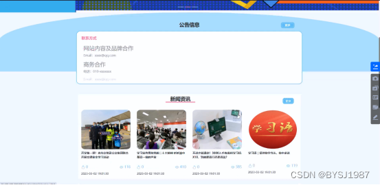 (2)公告信息:在首页导航栏上我们会看到“公告信息”这一菜单,我们点击进入进去以后,会看到所有管理员在后台发布的公告信息;