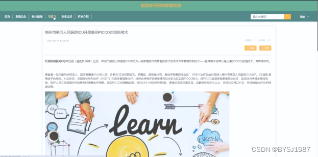 关键词:医院挂号预约管理系统;ssm;MYSQL