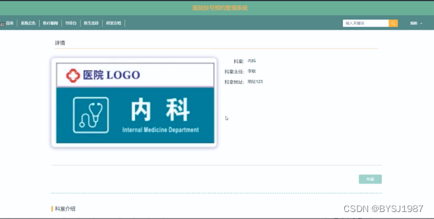 (6)科室介绍:用户可以查看科室介绍信息,在查询到自己想要了解的科室介绍的时候,可以进入查看详细的介绍。