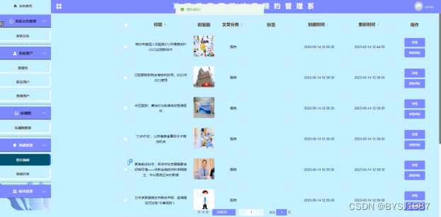 (5)资源管理:管理员点击“资源管理”菜单可以对其下医疗新闻和新闻的分类进行增删改查。