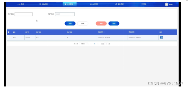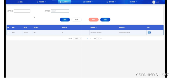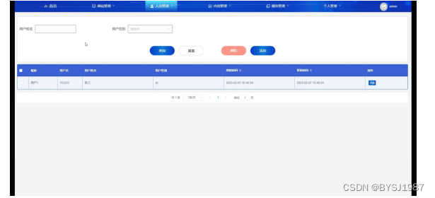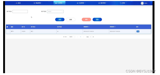注册用户信息,用户通过注册方可获得其对智慧酒店管理系统的登录使用权限,此时选择注册用户选项,系统就会自动转到用户注册页面,在注册该部分信息时系统会自动调用add函数,然后在给定的文本框中填写有关该用户的基础信息后选择确认即可完成注册。检索用户信息,在新增用户信息以后,在检索工具栏中填写对应的用户信息,系统就会将该用户有关的所有信息展示出来。
