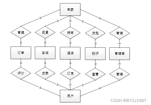 在需求分析中,我们用来分析的对象往往是抽象的,所以在需求分析应当避免过于细致的分析,而是需要将实际的功能与智慧酒店管理系统的各个模块相对应起来。智慧酒店管理系统利用E-R图对上述实体和联系进行描述。