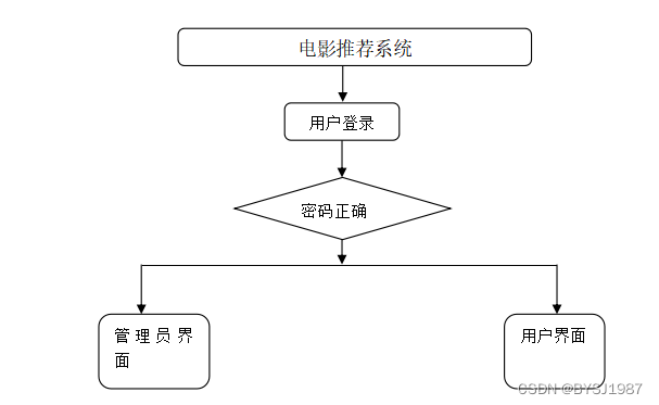 用户需要拥有属于自己的账号和密码,且必须正确,这样才能顺利登录到系统中。进入网站后,用户可以自行查询各种电影操作。具体流程如下图3-1所示: