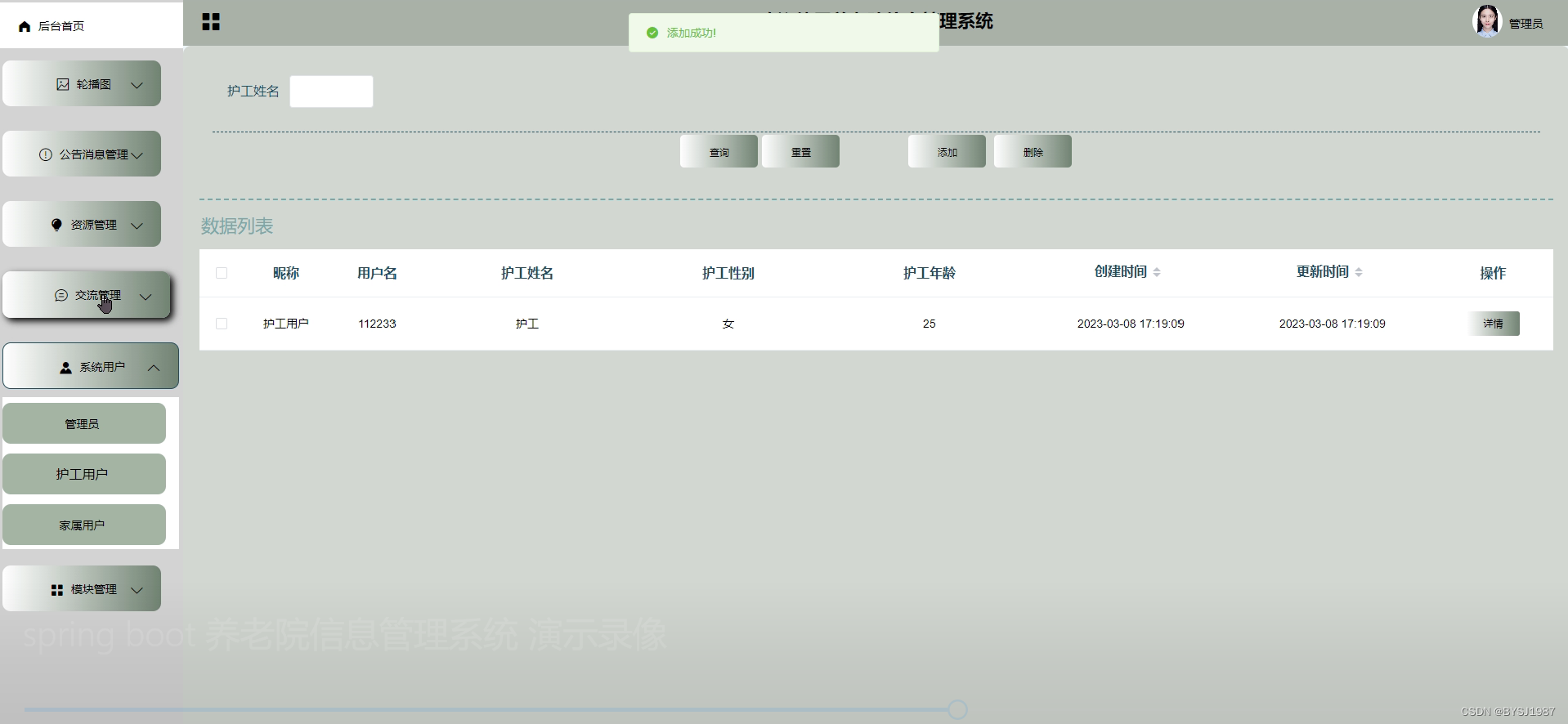 护工可以将老人日常信息录入系统进行保存,管理员可以对此模块进行维护管理。