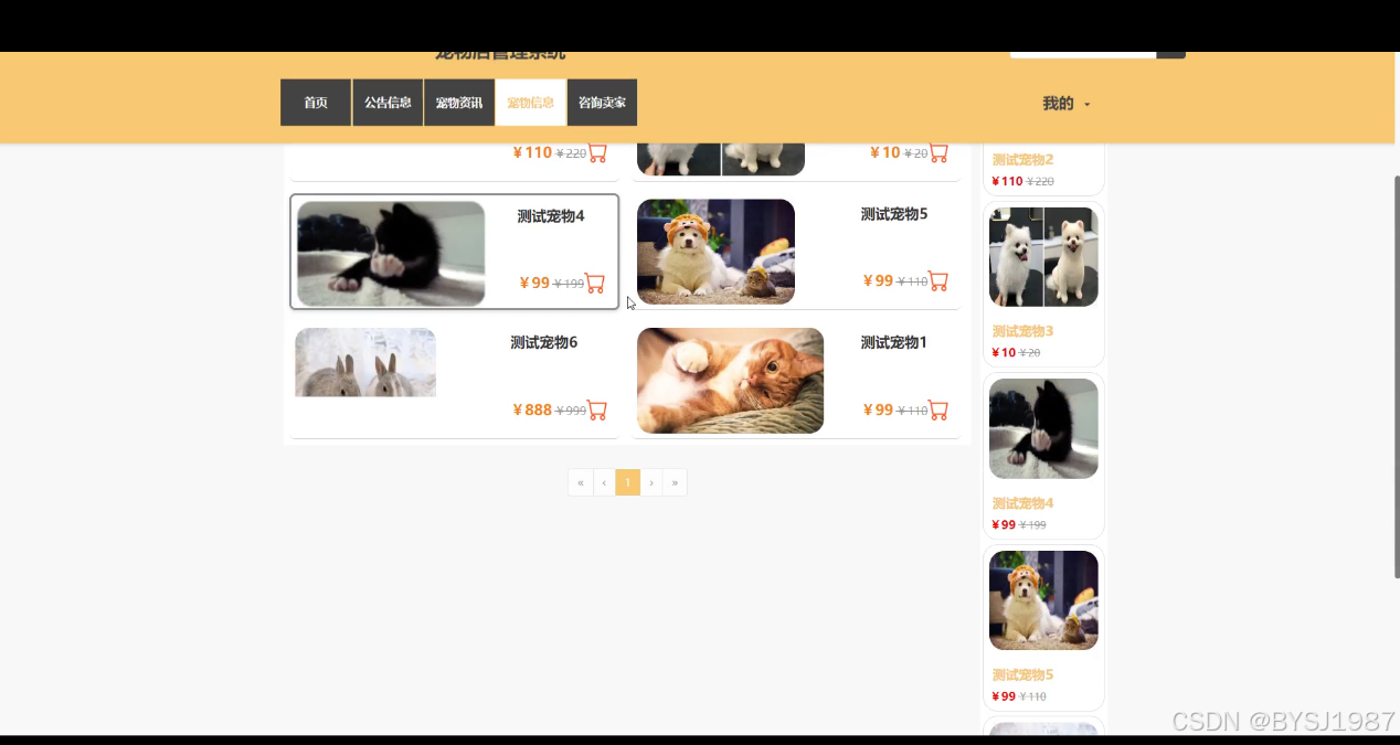 (1)功能要求:首页,轮播图管理,公告信息管理,资源管理,商城管理(宠物信息,分类列表,订单列表),系统用户,模块管理(咨询卖家,物流信息,提醒发货)等功能模块。