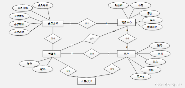 概念模型的设计是为了抽象真实世界的信息,并对信息世界进行建模。它是数据库设计的强大工具。数据库概念模型设计可以通过E-R图描述现实世界的概念模型。系统的E-R图显示了系统中实体之间的链接。而且Mysql数据库是自我保护能力比较强的数据库,下图主要是对数据库实体的E-R图: