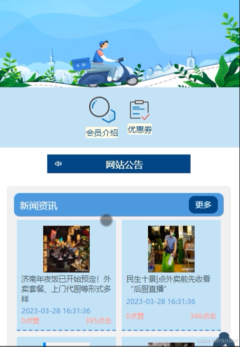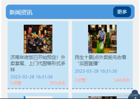 新闻资讯,在新闻资讯页面可以查看资讯标题、资讯描述、封面图片、点赞数、点击数等信息,可对喜欢的资讯信息进行点赞、收藏和发表评论等操作;如图5-4所示。