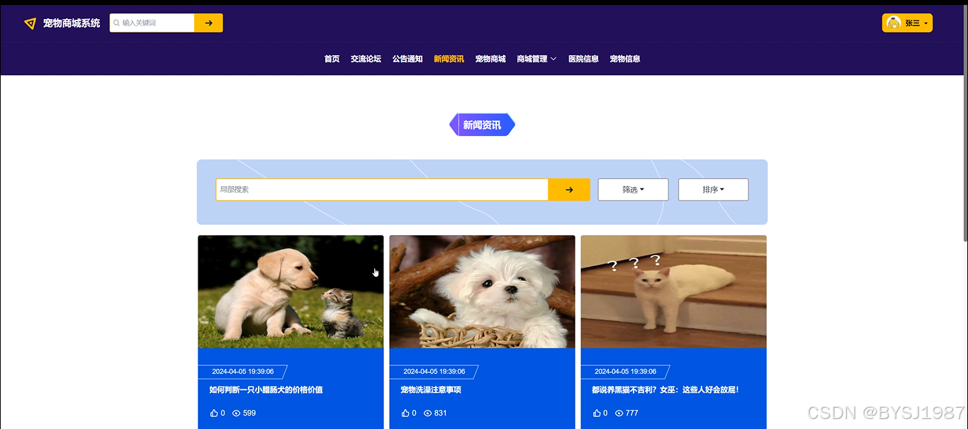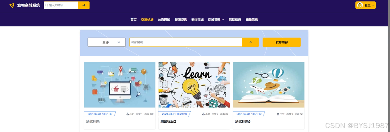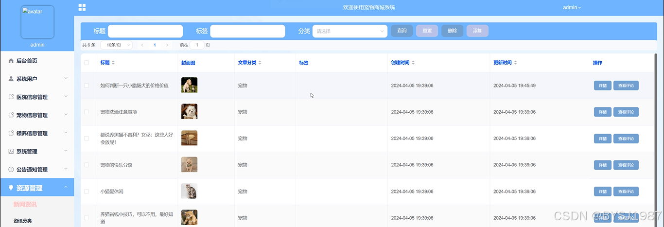 The pet information management module in the pet mall system provides the detailed information management and display of pet types, breeds, etc., to help users better understand and choose suitable pets for themselves; The hospital information management module integrates the location and doctor information of the pet hospital to facilitate users to find pet medical services in time. The adoption information management module provides information about the process, conditions and adoption center of pet adoption, which promotes the standardization and convenience of pet adoption behavior. The mall management module allows users to browse and purchase various pet supplies, realizing the convenient access to pet daily supplies; The communication management module provides a platform for pet lovers to exchange and interact, share care experience and exchange views, and promote the co-construction and exchange of pet communities. The design and implementation of these functional modules will provide all-round and convenient pet service experience for pet lovers and caregivers, and promote the development of digital pet industry and the improvement of user experience.