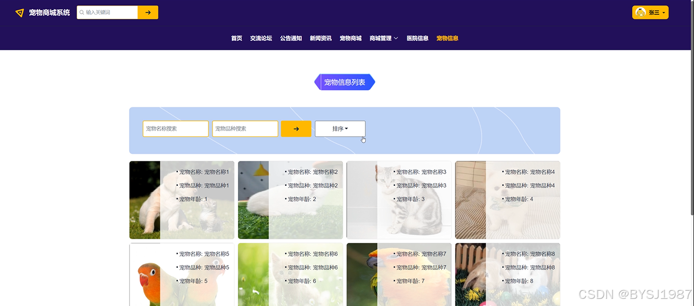 | 预期结果 | 可以查看到所有宠物信息列表 |