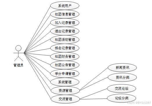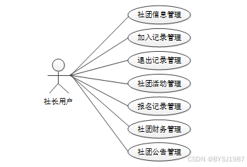 通过2.3功能的分析,得出了本校园社团信息管理系统的用例图: