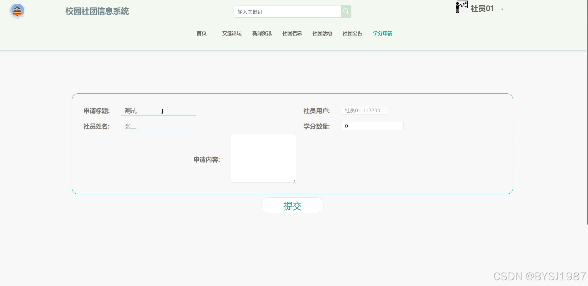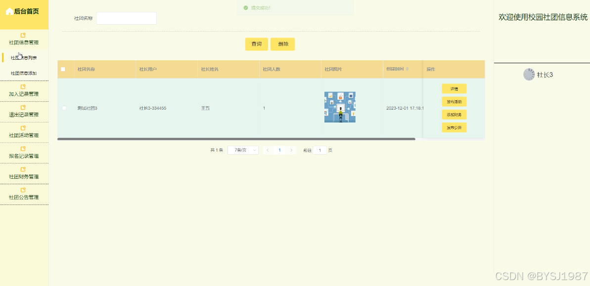 | 预期结果 | 提交以后,页面首页会显示新的社团信息管理信息 | ||