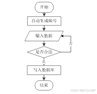 用户成功登入系统后就能够实现增加数据的操作,增加数据的编号是特定的,系统生成,用户不能随意填写,除了编号以外,其他增加信息用户自己填写,填写后的信息经过系统验证,验证合法通过就显示增加数据成功了,相反的话,就没有增加成功,图2-1显示的就是在增加数据时的流程。